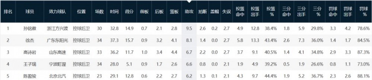 其中,广厦核心孙铭徽并未入选,他本赛季场均贡献14.9分2.8篮板9.5助攻,他是本赛季的本土助攻王。