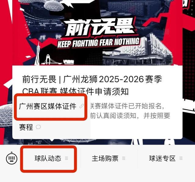 前行无畏广州龙狮20252026赛季CBA联赛媒体证件申请须知
