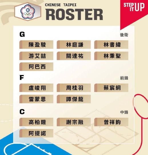 中国台北男篮世预赛第一窗口期大名单:
