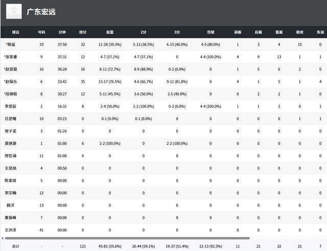 至于说个人呢表现,杨溢真的是不辱使命,此役首发打了38分钟,28投11中,三分球15投6中,5罚4中,独砍32分4篮板15助攻,可谓赢球的第一大功臣。而赵保乐更是高效地17投13中,轰下35分。再看山东队,王证打了22分钟,14投7中,只拿到22分。