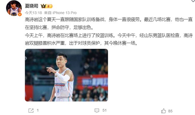 高诗岩因为双膝积液严重这场比赛轮休一场。