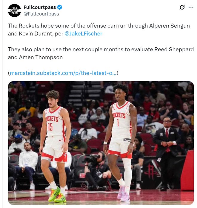 9月27日,BR记者杰克-费舍尔则透露,火箭预计不会采取应对性的引援,球队愿意花费数月来考察谢泼德、阿门担任持球手时的表现。这说明此两人的角色会在新赛季无限放大。
