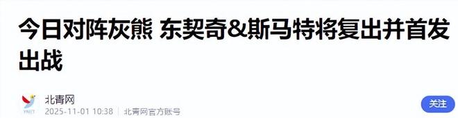 北青网(今日对阵灰熊 东契奇&斯马特将复出并首发出战2025.11.01)