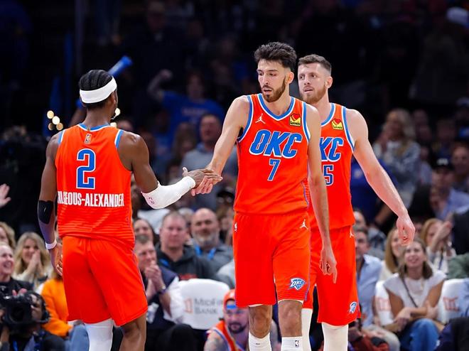 值得一提的是,雷霆的队内第二号球星杰伦威廉姆斯,本赛季因伤至今未出战。此外,OKC的内线核心霍姆格伦、防守专家卡鲁索、锋线悍将维金斯3大主要轮换都缺席了4场比赛,而神射手以赛亚乔缺席了5场比赛,侧翼顶级大锁多尔特因伤缺席了多达6场比赛。这也意味着,OKC取得了联盟第一的佳绩,是亚历山大部分时间带领残阵雷霆拿下的。不得不说,OKC当下的战绩可谓是含金量十足。雷霆本赛季先后还击败了火箭、快船、勇士与湖人4大夺冠热门,OKC可谓是气势如虹。