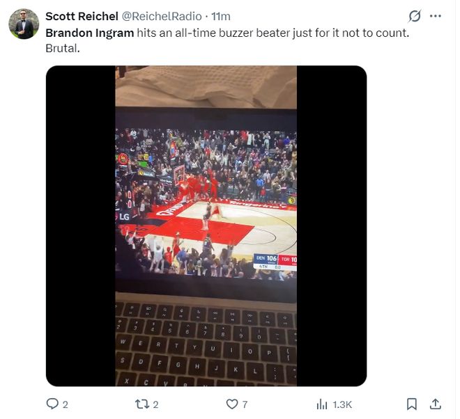 有美国记者解释:那是计分器的问题,在这场比赛最后时刻,比赛时间与计时器不同步,实际上在比赛时间已经0.0时球还在英格拉姆手上,但官方的走时表停留在0.3秒。现场的计时器早已归零,真是让人痛心不已。