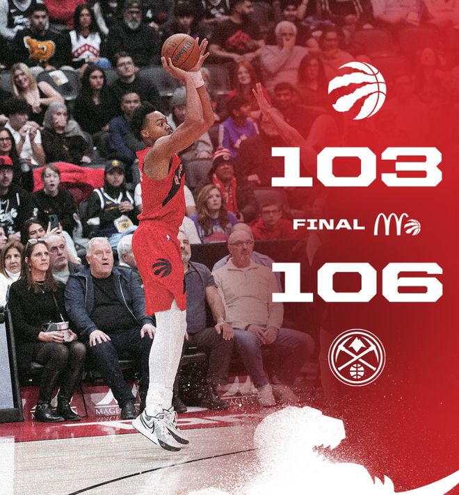 - 北京时间1月1日,NBA常规赛,猛龙主场103-106惜败掘金结束二连胜。要知道这场比赛猛龙是面对没有约基奇、戈登、...发表于: 01-01 19:44