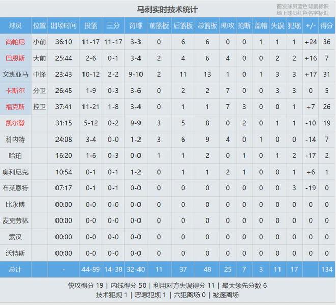 尚帕尼三分17中11,狂砍36分6板!文班亚马31分13板、福克斯26分7助3断、凯尔登19分8板。尼克斯4人砍下20+,最后看看数据,说说心情: