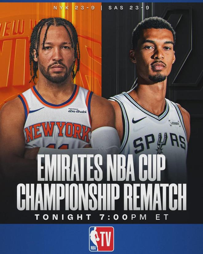 北京时间1月1日,NBA常规赛:马刺主场vs尼克斯。教主先祝大家新年快乐啊,万事顺意。这是两队本赛季第二次交手,上一次是NBA杯决赛,当时马刺输给尼克斯11分。文班赛前表示:“很期待这场对决,我们欠自己一场胜利。”
