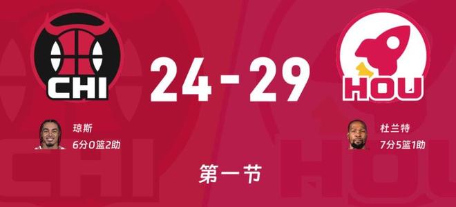 比赛开始火箭先攻,奥科罗对位杜兰特,武切维奇对阵申京。申京、杜兰特前两次投篮打铁,武切维奇快下吃饼得到公牛开场第一分,转换过来小贾中距离出手命中,第一次出手就有希望这是一个好消息,双方2-2开局!琼斯三分、史密斯空切、奥科罗三分公牛进攻层次感很好,始终压制火箭,火箭这边主要是内线得分奥科吉上来,杜兰特连续单打成功比分来到10-10平。进入首节中段,琼斯、杜兰特互飚三分,申京单打武切维奇直接被帽,杰伦史密斯反击球被切出界外,比赛进入官方暂停回来公牛前场发球。杰伦史密斯内线打了申京一个2+1可惜加罚没有,申京不服内线吃到武切维奇,双方分差始终维持在一个球权,谁也拉不开比分。申京发球失误5分41秒被亚当斯换下场,节末谢泼德上来连续命中三分27-21打停公牛,此后2分15秒双方各投中一球公牛将比分追到24-29!