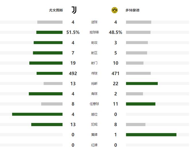本场比赛两支球队上半场颗粒无收,下半场则开始了对攻大战,伊尔迪兹传射建功,弗拉霍维奇双响,以及凯利的最后时刻的救赎,帮助尤文4-1读秒绝平多特蒙德!