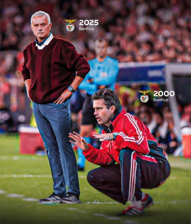 2000年9月20日,37岁的穆里尼奥上任葡超豪门本菲卡主教练,首次作为职业一线队主教练,凭借独特的战术理念和犀利的执教风格崭露头角。25年时间,足以让彼时意气风发在足坛掀起惊涛