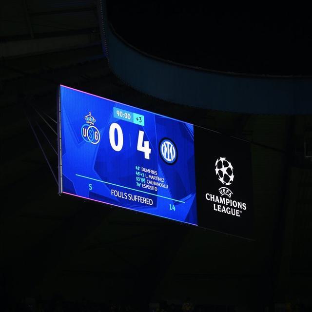 时隔21年,国米队史第二次欧战客场比赛净胜至少4球