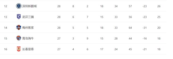 中超第28轮,武汉三镇在主场作战的情况下,1-2不敌少打一人的深圳新鹏城,尽管武汉三镇仍占据积分优势,先赛领先降级区7分,但是武汉三镇的保级形势依然不容乐观,因为根据目前的积分形