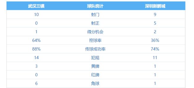 但是纵观全场比赛,以及赛后数据,武汉三镇在这场比赛输的完全就是无话可说,全场没有一脚射正的同时,还多打一人,并且还是在主场作战,可以说,武汉三镇在本场比赛之所以不敌深圳新鹏城,除了全队没有进取心之外,还因为这场比赛有三名球员的表现堪称水货,而且正是这三名球员的低迷表现,导致球队输球置球队于险境……