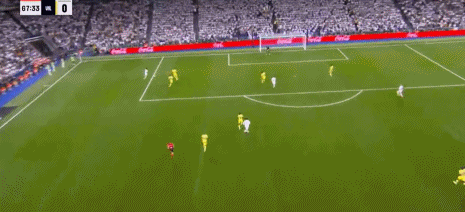 2球领先的皇马后防有些松懈,仅仅过了2分钟,比利亚雷亚尔左路压上,盖耶禁区角上横传中路,禁区弧顶处完全无人的米考塔泽接球从容调整后大力抽射,皮球直入球门右侧死角,比利亚雷亚尔1:2快速扳回一球。第77分钟,穆里尼奥又一次被维尼修斯硬突生吃,他无奈拉倒维尼修斯吃到第2张黄牌被罚下场。多一人的皇马很快抓住机会,3分钟后,皇马前场中路压上,贝林厄姆反抢断球,姆巴佩禁区弧顶处接球斜塞右侧,迪亚斯插上禁区右侧策应再将球传回中路,姆巴佩跟进抢点直接推射半空门得手,皇马3:1锁定胜局。