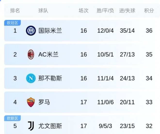意甲第17轮罗马3-1热那亚升第四。2025年意甲赛程全部结束,国米榜首收官,米兰第二,那不勒斯第三,尤文第五。最新积分榜如下: