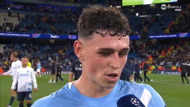 在欧冠联赛阶段首轮主场2-0击败那不勒斯之后,送出了一次助攻的曼城前锋福登接受了来自TNT体育的采访。