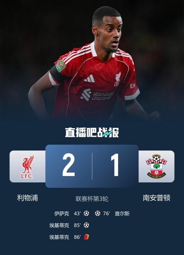 直播吧09月24日宣 联赛杯第3轮,利物浦2-1惊险绝杀南安普顿晋级。利物浦,再一次绝杀!