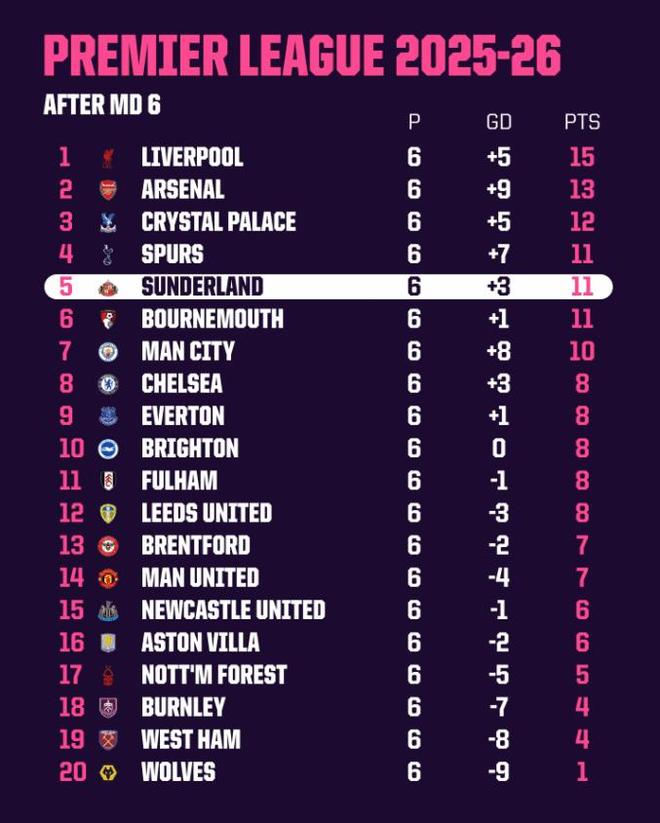 更令人惊讶的是,他们目前的战绩甚至优于去年降级的莱斯特城、伊普斯维奇和南安普顿在2025年里英超的表现。尽管赛季才刚开始,但桑德兰展现出的整体气质与场上表现,完全不像一支刚刚升级的球队,反而像是早已适应这个舞台。