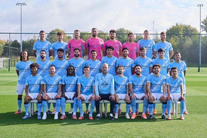 这张照片由瓜迪奥拉、他的教练组以及完整的一线队成员共同出镜,于城市足球学院拍摄完成。
