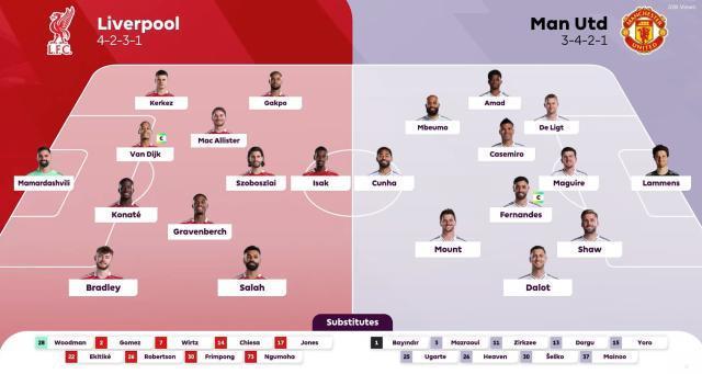 【英超】利物浦大战曼联!维尔茨埃基蒂克舍什科替补
