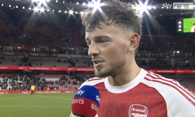 英超第14轮,阿森纳主场2-0击败布伦特福德,赛后,阿森纳后卫本-怀特接受了天空体育的采访。