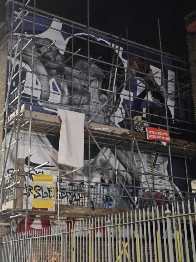 为欢迎孙兴慜的回归,热刺为孙兴慜在街头绘制比赛,现在壁画已经被球迷拍到,据悉,当地时间12月9日这幅壁画将完工,而画面中是孙兴慜的经典庆祝动作+捧起欧联杯冠军。