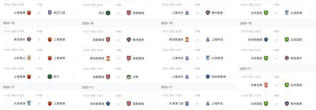 赛程对比只有海港要打泰山申花末轮客战津门虎国安对阵倒数前4