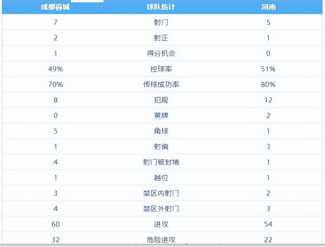 但仅此而已,半场河南仅仅在控球率上略略高于主队,但射门数5比7、危险进攻22比32,角球1-5,0-1的比分没有被进一步扩大已经算是侥幸。